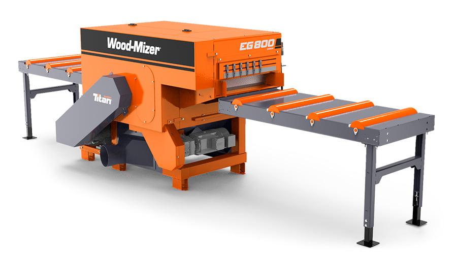 • Průmyslová omítačka / multirip EG800 je vybavena standardně 4 kotoučovými pilami s možností nainstalovat přídavné pily. Se 4 kotoučovými pilami může EG800 zpracovávat dřevo o tloušťce až 40 mm při rychlosti podávání až 60 m/min nebo řezat hranoly tlusté až 100 mm při pomalejší rychlostí podávání. EG800 má proměnnou rychlost podávání. Omítačka EG800 může být vybavena motorem 30kW, 37kW, 45kW nebo 55kW.