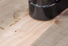 SlabMizer, který byl vyvinut v USA, efektivně srovnává a upravuje povrchy dřevěných desek, prken, sukovatých kusů, koleček nařezaných z objemných špalků a další široký materiál s minimální nutnou prací.