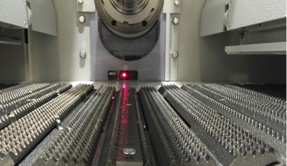 Laserový senzor sleduje kulisu posuvnej reťaze.