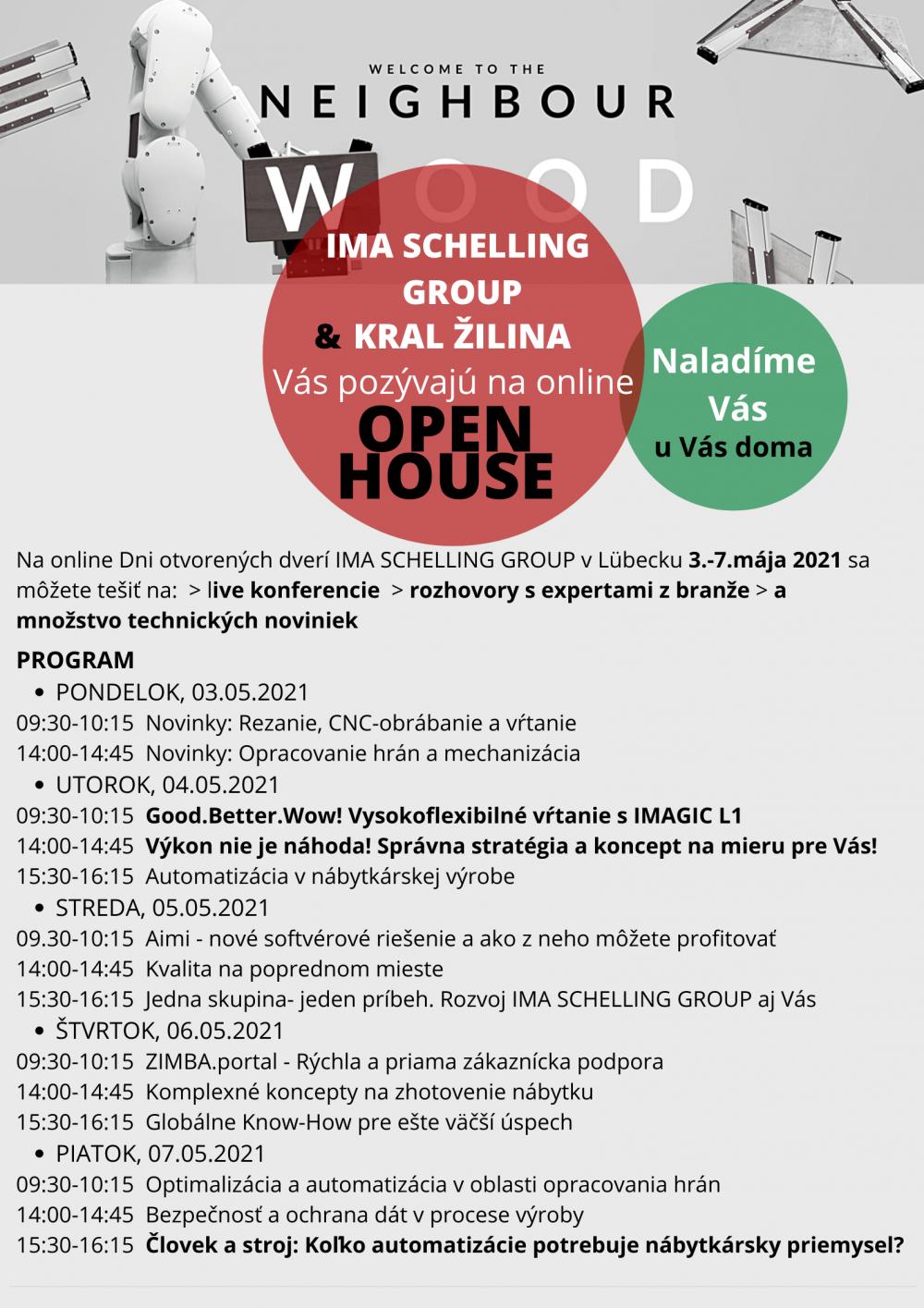 pozývame Vás na výnimočnú akciu spoločnosti IMA SCHELLING GROUP pod názvom OPEN HOUSE v dňoch 3. – 7. mája 2021.