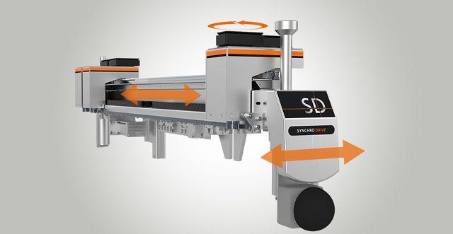 • každá z 50 servo osí SynchroDrive stola je ovládaná a polohovaná synchrónne pomocou softvéru stroja, čím je čas potrebný na nastavovanie stola redukovaný na absolútne minimum a zároveň je garantovaná presná poloha konzol a vákuových prísaviek na stole.