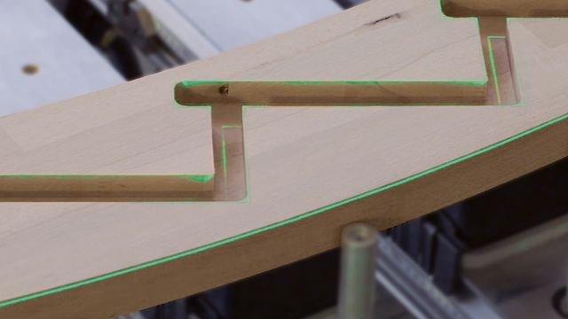 LEDkový stôl od Holz-Her – stôl s vizuálnymi nastaveniami sa stará o extrémne rýchle a presné nastavenie a znižuje tým na minimum chyby, ktoré by mohli inak pri opracovaní dielca vzniknúť. Vypočítané pozície konzol a prísaviek sú zobrazené užívateľovi pomocou farebných LED pásikov a za pomoci farebných kódov Vám laser zvýrazní typ prísavky, ktorý je potrebné v danom momente použiť. Bez akýchkoľvek problémov je možné ukázať aj uhol natočenia otočných prísaviek, čo robí z polohovania prísaviek pri voľných formách hračku.