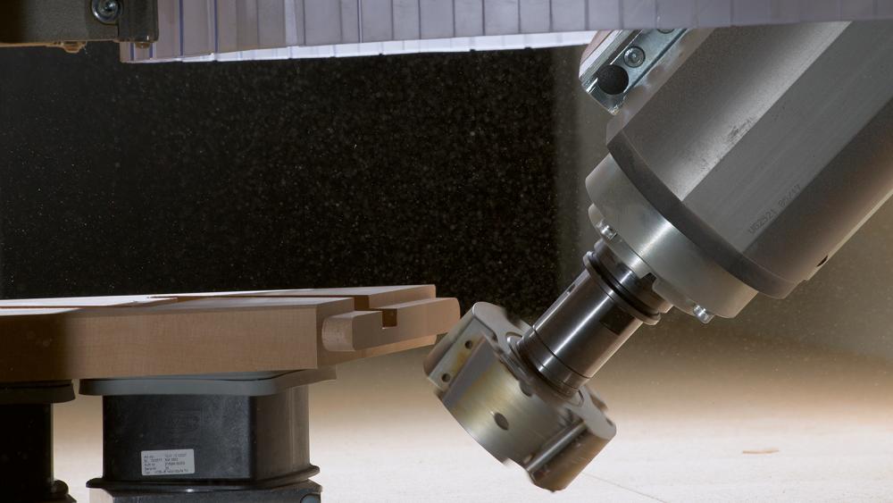 Kardánová obrábacia hlava s výkonom do 17 kW (štandardne 10 kW) sa stará o precízne zhotovenie komplexných skosených alebo zakrivených dielcov v prepracovanom dizajne ako sú zábradlia, stavebné komponenty nábytku alebo rôzne formy. Kompaktná, silná a interpolárna obrábacia hlava pracuje na otáčkach až do 24,000 ot./min. a má vďaka keramickému ložisku a kvapalinovému chladeniu extrémne dlhú životnosť.
