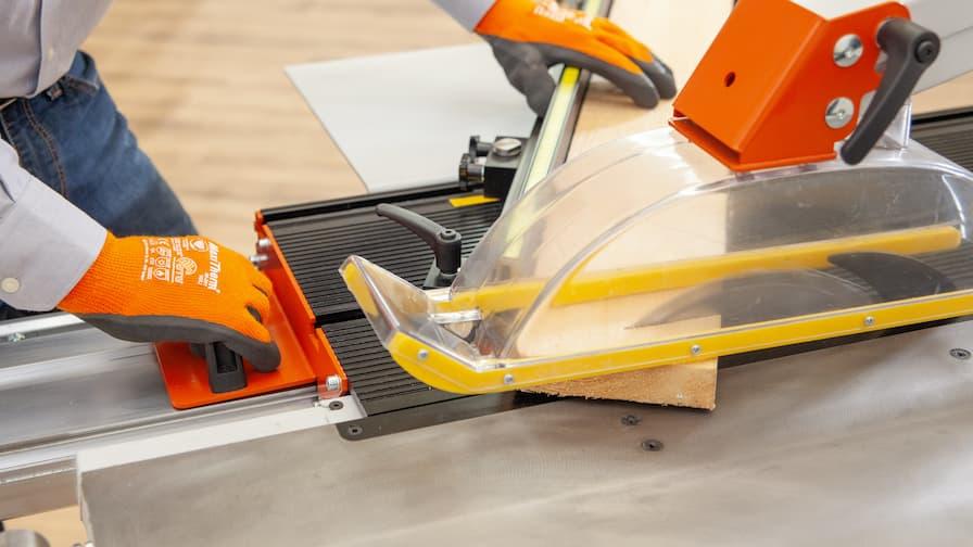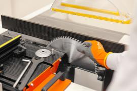 Stolní pila má dvě vodicí lišty pro pohodlnou manipulaci s materiálem při řezání. Souběžná vodicí lišta prkna s knoflíkem jemného nastavení je pro přesné měření až na 0,1 mm a svislá posuvná vodicí lišta je pro seřízení úhlu řezání na obou stranách stolu. Krytem pilového kotouče SUVA lze pro jeho nastavení pohybovat a jeho boky zaručují bezpečnost při řezání.