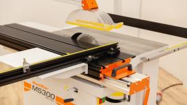 Pro zvětšení pracovního povrchu pro materiál můžete rozšířit posuvný stůl postranní policí 500 mm x 360 mm a prodloužit pracovní stůl o 520 mm. Navíc může být MS300 vybavena dalším prodloužením pracovního stolu 900 mm x 440 mm, které pomáhá řezání větších materiálů.
