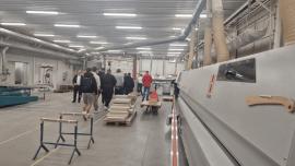 Návštevníci prešli celým výrobným procesom – od plánovania výroby v kancelárii, cez formátovanie materiálu na nárezovom centre, CNC opracovanie dielcov, olepovanie hrán, až po finálne vŕtanie a narážanie kolíkov na technológii od firmy HOLZ-HER. Návštevníci mohli vidieť aj tradičné stolárske stroje, ako formátovacia píla MARTIN T65, drvička drevného odpadu UNTHA či briketovací lis od spoločnosti AC WORD.