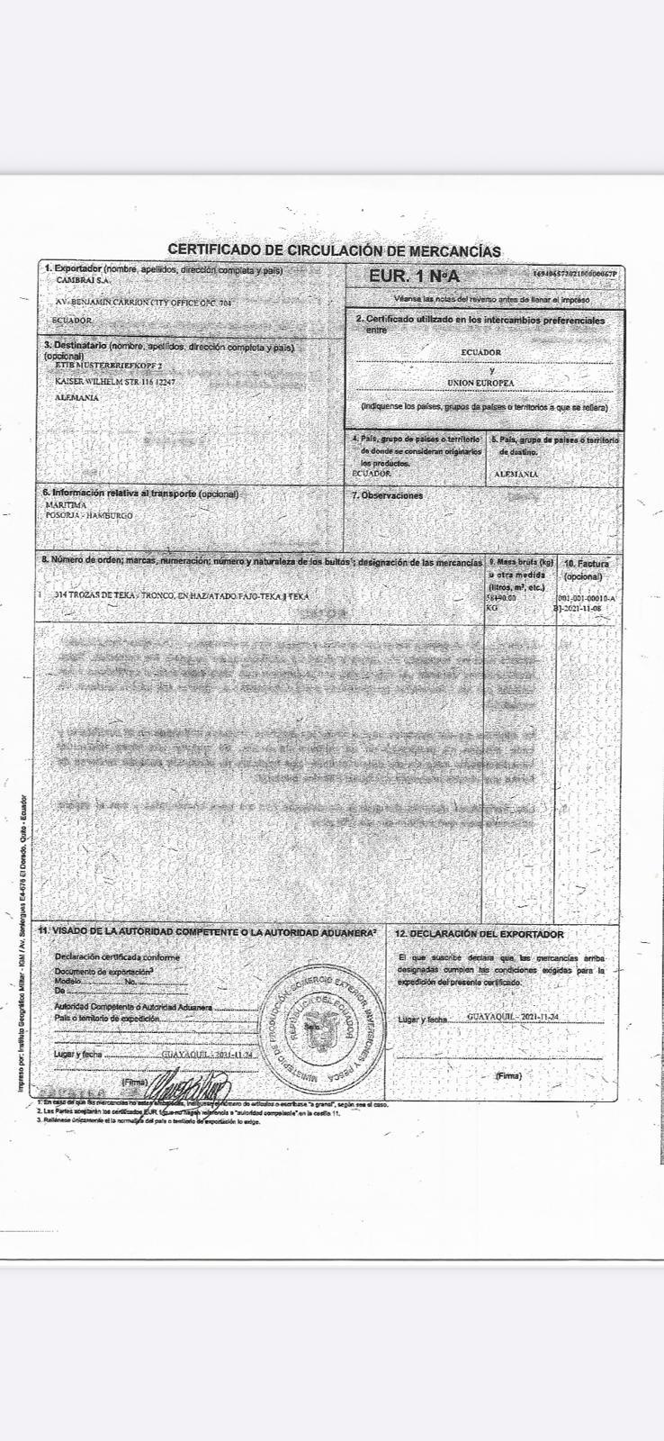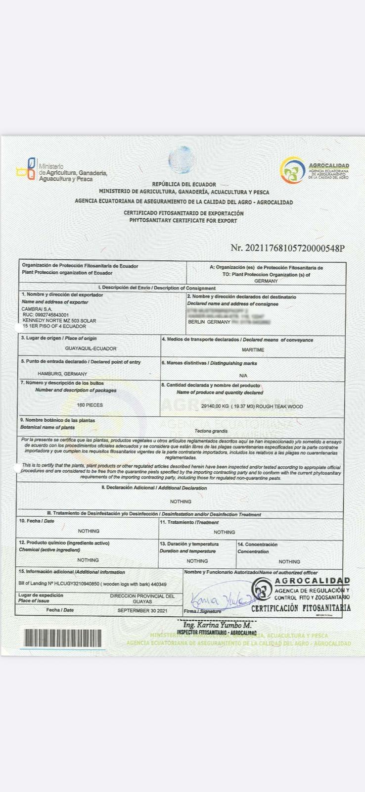 | Shipping / Transport / Payment : | CFR - Cost and Freight (named destination port) Invoice |